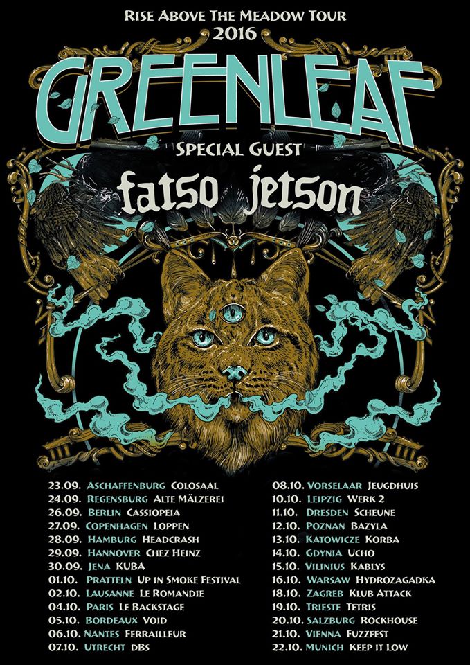 By the end of 2013, GREENLEAF was on the move again, bidding Cedermalm “adieu” and saying a hearty “hola” to a tandem of new recruits in frontman Arvid Jonsson and drummer Sebastian Olsson, who joined Holappa and long-serving bassist Bengt Bäcke in time to record (incidentally, with no outside help, guest musicians, or other additives) what has become GREENLEAF’s fifth LP “Trails and Passes”, released in May of 2014 via Small Stone Recordings.
