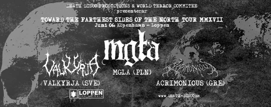 Med sig denne aften på Loppen har bandet taget svenske Valkyrja og græske Acrimonious.