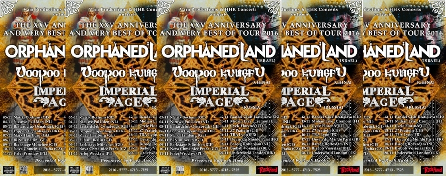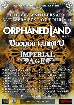 Israelske Orphaned Land fejrer 25 års jubilæum med en "Best Off"-tour. De er pionerer indenfor orientalsk metal og har bygget bro rundt i hele verden med deres hebraisk og arabisk-klingende metal. Orphaned Land spiller både akustisk traditionelt og fuldt ud elektrisk, og de er kendte for at fastfryse publikum til scenen fra start til slut. De fejrer altså deres 25 års jubilæum ved at tage publikum med på en særlig rejse fra fortiden over nutiden og med et smut til fremtiden..