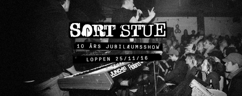 Sort Stue blev dannet midt i tåregas og optøjer i 2006 på Nørrebro. Det ni personer store Hip Hop-kollektiv blev hurtigt én af Danmarks mest durkdrevne grupper, der blev kendt for sin direkte og kompromisløse rap, samt de energiske live-shows. Denne aften på Loppen, ti år efter gruppens første koncert i Ungdomshusets sal, fejrer vi at ånden, oprøret og Stuen stadig er her med et brag af et show!