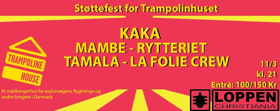 Trampolinhuset har mistet sin støtte fra det offentlige og er havnet i en økonomisk knibe. Derfor skal Trampolinhuset finde nye midler for at kunne fortsætte husets aktiviteter, og det vil Loppen gerne hjælpe med! Vi har i samarbejde fundet en række fantastiske musikere, som vil støtte sagen og spille en koncert, hvor alle entréindtægter går direkte til Trampolinhuset.