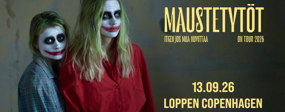 Sidst de turnerede i Skandinavien i 2024, var der godt fyldt på Loppen til koncerten med Maustetytöt. Nu er Finlands uden tvivl cooleste duo tilbage med den nye single “Oslo Helsinki Berlin Kokkola”. Nummeret er en første forsmag på Maustetytöts fjerde album “Itken jos mua huvittaa” (jeg græder, hvis jeg har lyst), som udkommer fredag den 13. marts 2026. Albummet indeholder ti opløftende sange, der behandler temaer som mobning i skolen, spiseforstyrrelser, vanskeligheder ved at håndtere livet og den konstant nært forestående død - du ved ren solskin og regnbuer.