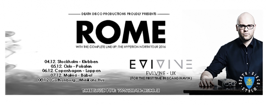 Jerome Reuter’s musikalske projekt Rome behøver ingen synderlig introduktion. Med en diskografi på 12 udgivelser er Rome stærkt etableret og har skabt en solid fanbase i Europa. Udsolgte shows er en del af bandets hverdag sammen med minimum én udgivelse om året. Jerome Reuter optræder med fuldt band på denne tour.